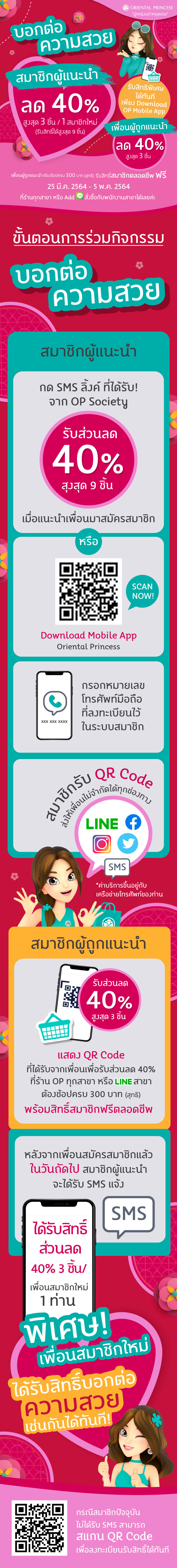 - สมาชิกผู้แนะนำสามารถใช้สิทธิ์ลด 40% ได้ถึงวันที่ 31 พค. 2564