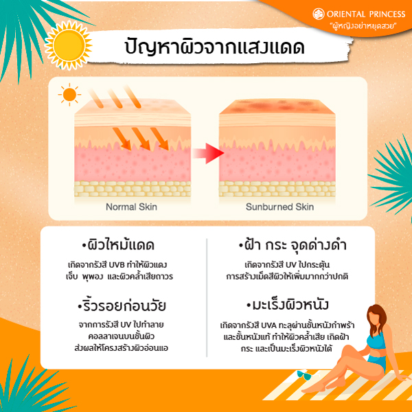 #  ผิวไหม้แดด ... เกิดจากรังสี UVB ทำให้ผิวแดง เจ็บ พุพอง และผิวคล้ำเสียถาวร