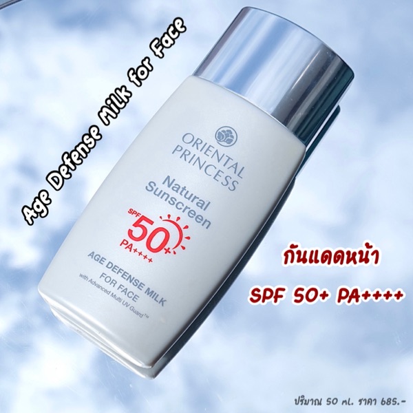 ครีมกันแดด Natural Sunscreen Age Defense Milk For Face SPF 50+ PA++++