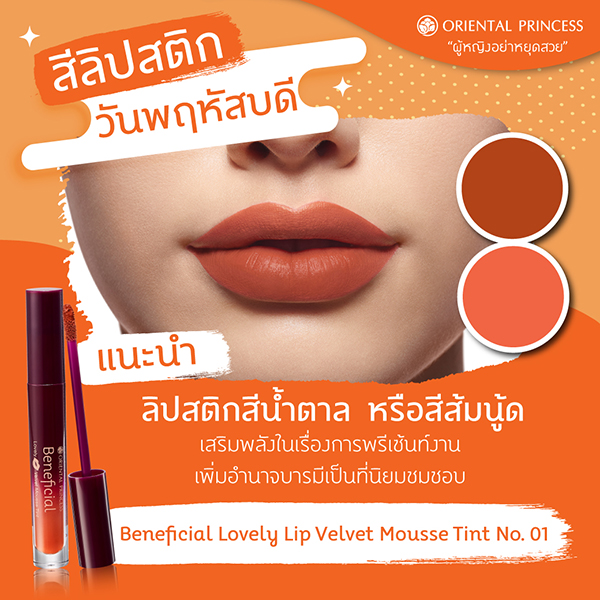 แนะนำ : ลิปสติกสีส้ม หรือสีชมพูอมส้ม