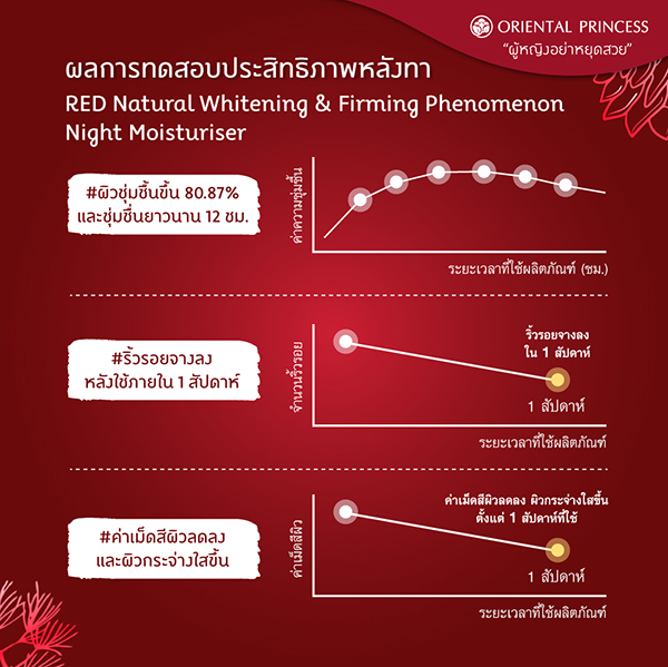 ผลการทดสอบประสิทธิภาพ หลังทา RED Natural Whitening & Firming