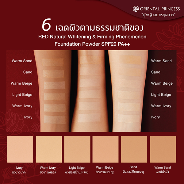 แป้งอัพผิวสว่าง คุมมันยาวนาน 12 ชม. ผสานคุณค่านวัตกรรมบำรุงจากญี่ปุ่น 6 เฉดสีสวยเด่นไม่ดรอป RED Natural Whitening & Firming Phenomenon Foundation Powder SPF20 PA++