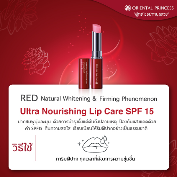 ปากชมพูนุ่มละมุน  ด้วยการบำรุงตั้งแต่ต้นถึงปลายเหตุ  ป้องกันแสงแดดด้วยค่า SPF15  คืนความ
