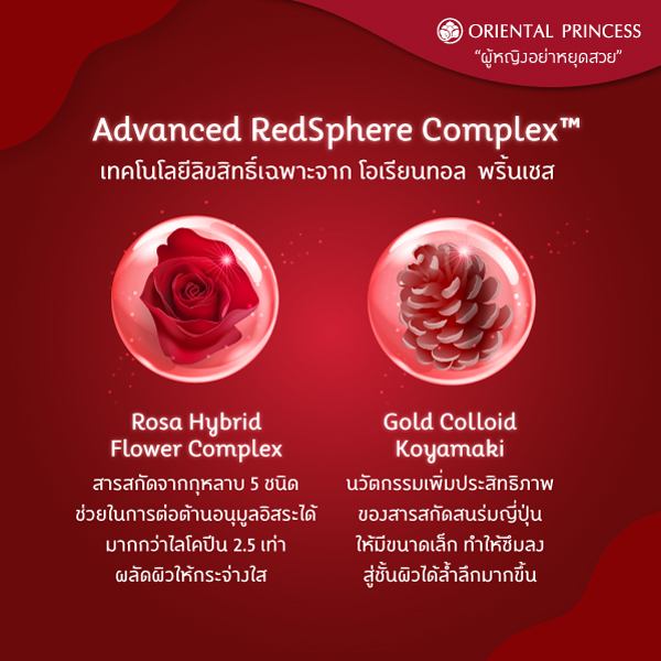 ลิขสิทธิ์เฉพาะจากโอเรียนทอล พริ้นเซส Advanced RedSphere Complex™ ซึ่งเป็นนวัตกรรม