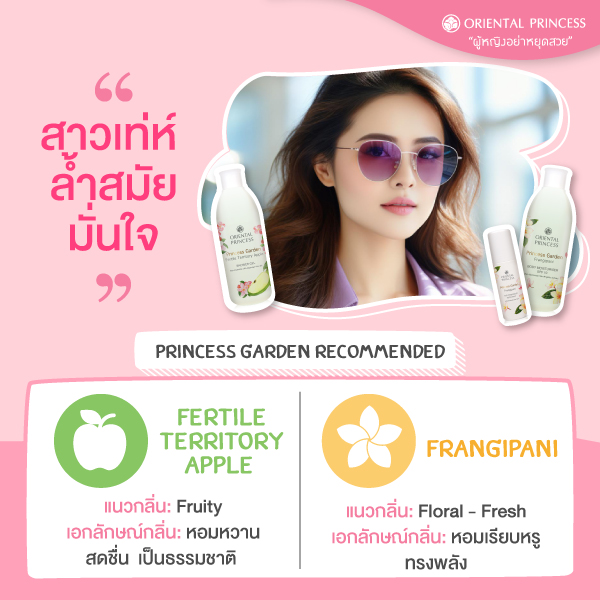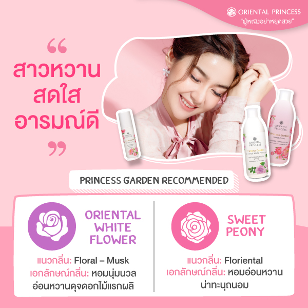 มาค่ะทุกคนมาเป็นผู้หญิงผิวหอม ด้วย Oriental Princess Princess Garden ไปด้วยกัน การันตีด้วยความหอมที่ผ่านการคัดสรรจากคุณค่าสารสกัดที่มีความหอมสดชื่น อ่อนโยนละมุนจากธรรมชาติ และมีกลิ่นหอมให้เลือกให้เหมาะกับคาร์แรกเตอร์สาวๆ ได้มากถึง 7 กลิ่น แอบกระซิบนิดนึงค่ะว่าแต่ละกลิ่นล้วนเป็นความหอมที่ฟินๆ แบบสุดๆไปเลย แวะมาทดลองความหอมที่คุณชอบได้แล้ววันนี้ ที่ร้าน Oriental Princessทุกสาขาทั่วประเทศ หรือ Shop Online ตลอด 24 ชม.กันไปเลยค่าาาาาา
