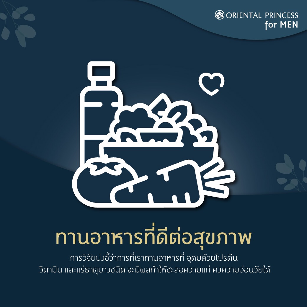 อาหารดีๆ ที่เรารับประทานเข้าไป นอกจากดีกับอวัยวะต่างๆ ภายในของเราแล้ว ส่วนที่เป็นผิวของเราก็ จะได้รับสารอาหารที่ดีไปด้วย เรียกว่าเป็นอาหารสำหรับผิวนั่นเอง การวิจัยบ่งชี้ว่าการที่เรารับประทานอาหารที่ อุดมด้วยโปรตีน วิตามิน และแร่ธาตุบางชนิด จะมีผลทำให้ชะลอความแก่ คงความอ่อนวัยได้ สารอาหารที่ จำเป็นต่อผิว เช่น วิตามิน A, C, E และ K จะส่งผลดีต่อสุขภาพผิวของคุณมาก ทั้งช่วยลดการผลิตน้ำมัน และ ทำให้ผิวมีความยืดหยุ่น ป้องกันการเกิดริ้วรอยแห่งวัย และอาหารที่มีน้ำตาล จะมีแนวโน้มที่จะมีผิวเหี่ยวย่นได้ ยากกว่าเมื่อต้องอยู่ในสภาวะที่ถูกแสงแดด การดื่มแอลกอฮอล์ทำให้เกิดผลเสียต่อสุขภาพผิวพรรณ ทำให้เปลือกตาบวม ผู้ที่ดื่มจัดร่างกายจะขาดวิตามินบี ทำให้ผิวพรรณซีด เหี่ยว แห้ง หย่อนยาน เป็นสิวและไฝแดง และยังทำให้อาการของโรคสะเก็ดเงิน ซึ่งผิวหนัง ต้องอาศัยวิตามินบี จึงจะมีสุขภาพผิวที่ดี ส่วนของที่หาได้ง่าย และสำคัญมากๆ สำหรับเมืองร้อนอย่างเราก็คือ "น้ำ" การดื่มน้ำในปริมาณที่พอเพียงวันละ 6-8 แก้ว นอกจากจะทำให้ร่างกายสดชื่น อวัยวะทำงานคล่องตัว ยังทำให้ผิวพรรณสดใสเต่งตึงด้วย #OP FOR MEN, ##OrientalPrincess, ##KEEPBEAUTIFULPosted in: Beauty Update