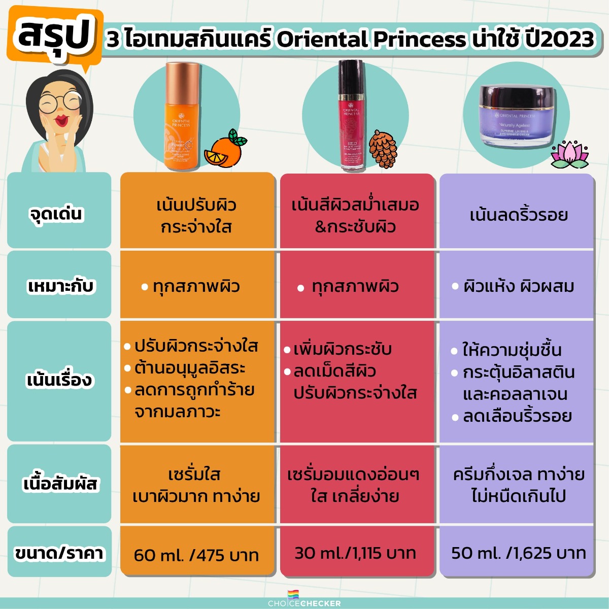 ตารางสรุป 3 ไอเทมสกินแคร์ Oriental Princess น่าใช้ ปี2023