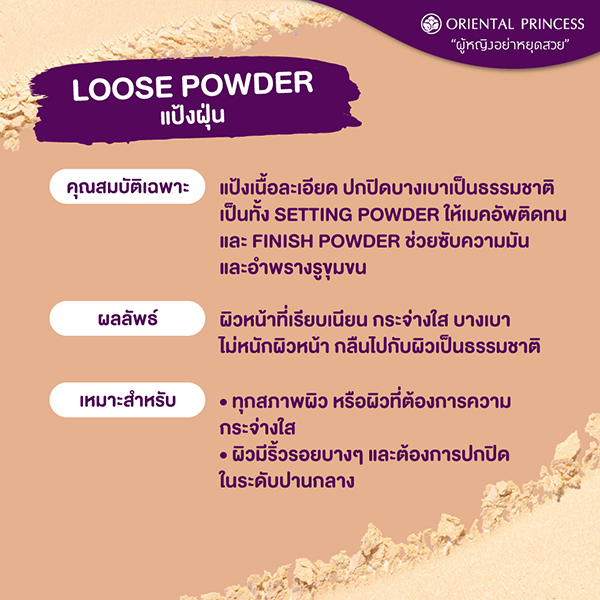 # ผิวทุกสภาพที่ต้องการความบางเบาสบายผิว พกพาง่ายมากว่า Loose Powder