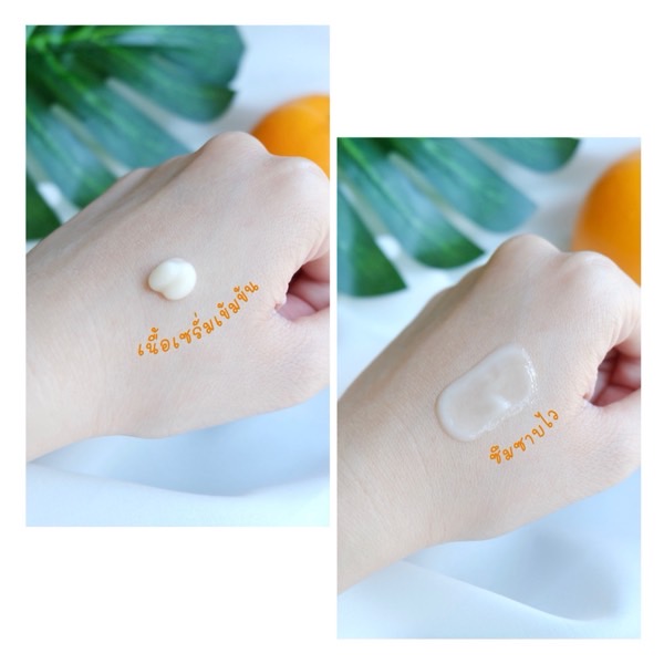 เนื้อเซรั่มซึมเข้าผิวได้ไวมาก และมีกลิ่นหอมอ่อนๆจากส้ม ถ้าคนที่ไม่ชอบกลิ่นส้มแนะนำว่าตัวนี้อาจจะ